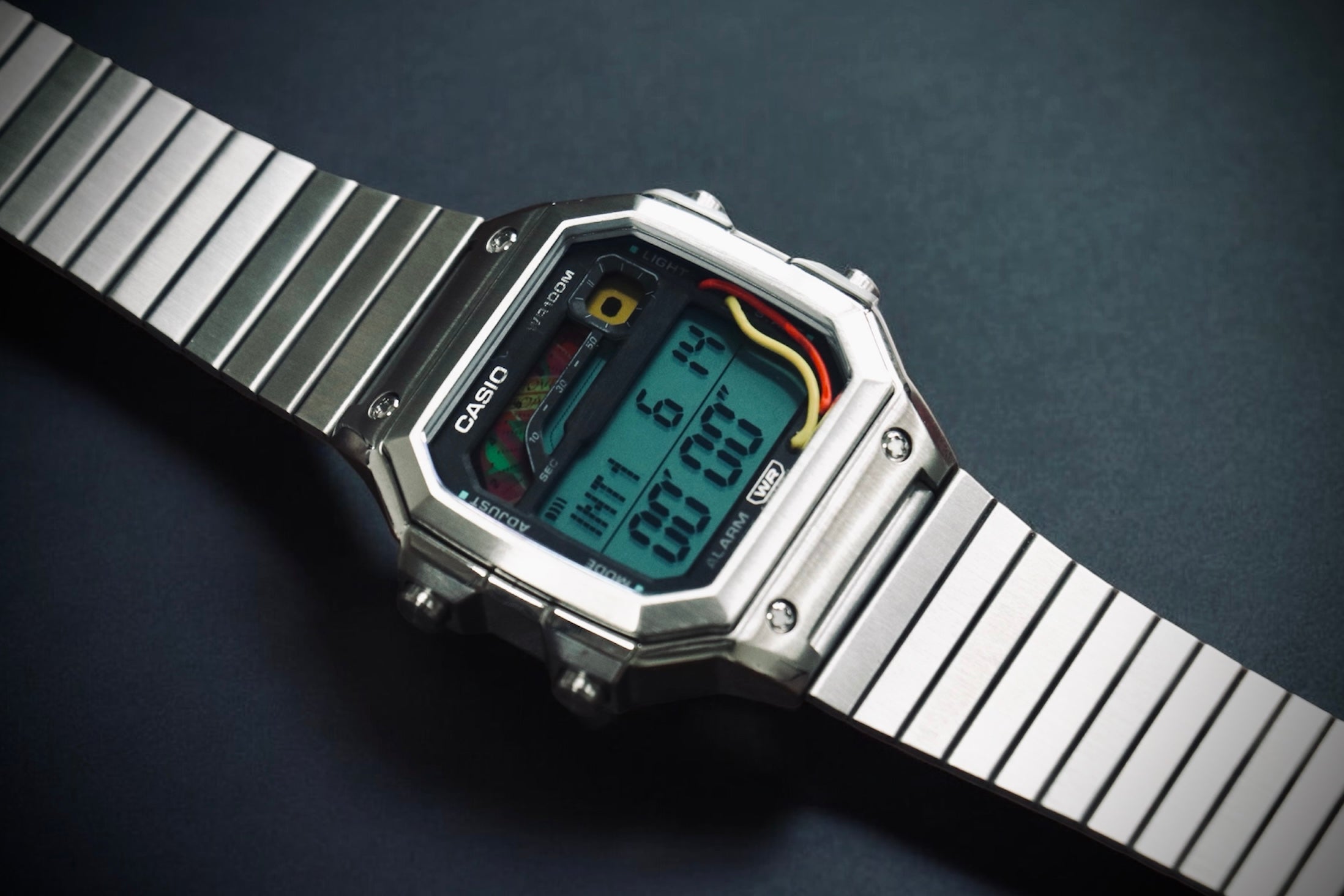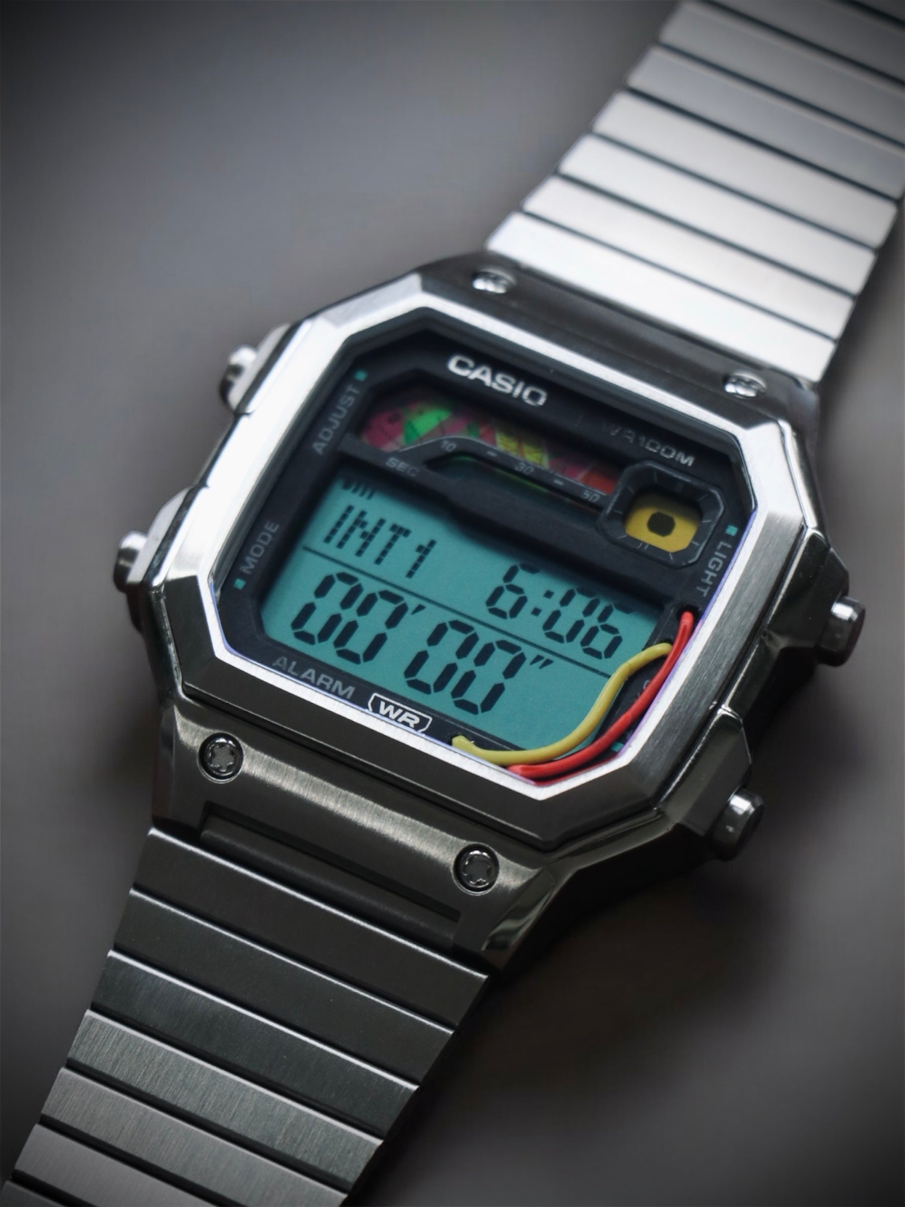 This Casio WS‑1600 mod is inspired by the iconic DeLorean from “Back to the Future” combining industrial futurism with a retro spirit.